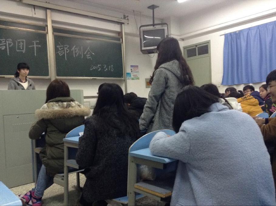 此次例会主要任务是吕孟丽同学向各班团支书传达《关于开展2015年团员民主教育评议活动的通知》,并且就如何开展好此次活动提出相关工作要求,活动时间段工作任务安排:3月17日至22日期间将开展团支部学习教育,内容有关两会、中国梦、习近平总书记系列重要讲话精神等。在3月22日至26日期间各支部团员完成思想,工作,学习,生活等的个人书面总结。3月26至30日开展民主评议、测评。3月31日至次月10日完成最后总结工作。会议期间,各团支部书记认真听会做好记录,并且提出各自支部目前存在的问题,副书记一一给了解答。例会尾声督促各班完成注册志愿者打卡器,pu平台的推广工作,以及近期志愿服务月活动的开展,相关通讯,照片归档整理工作。