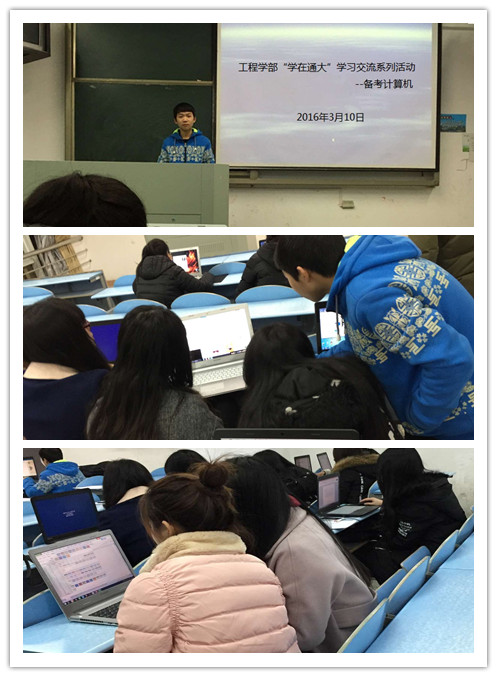 为进一步加强学风建设,提高工程学部同学的计算机等级考试通过率,2016年3月10日晚6点半,工程学部在主教楼105组织了“学在通大”学习交流系列活动之备考计算机活动。学部大一部分同学和大二计算机未通过的同学积极参加了此次活动。