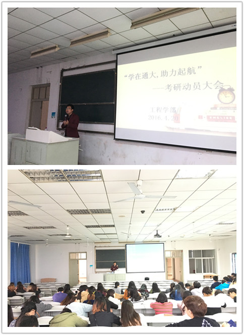 2016年4月20日下午4点,工程学部于主教楼422开展了“学在通大,助力起航”考研动员大会。牟蕾老师主持大会并邀请专家为工程学部的同学们做考研指导。