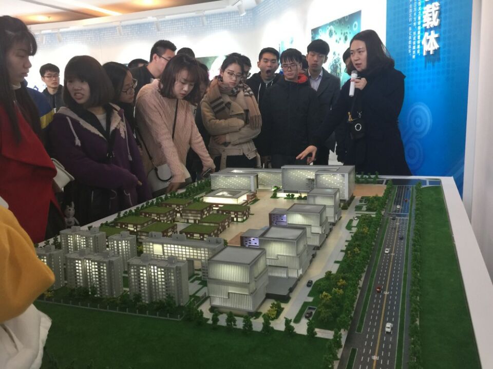活动开始,由江海智汇园的工作人员带领同学们参观了南通高新区创新创业成果展,解说员告诉同学们:成果展积极响应国家“大众创业万众创新”号召,落实“实践育人”教育方针,培养当代大学生创业创新精神。南通高新区江海智汇园的这些产业成果正是践行社会主义核心价值观最好的证明。
