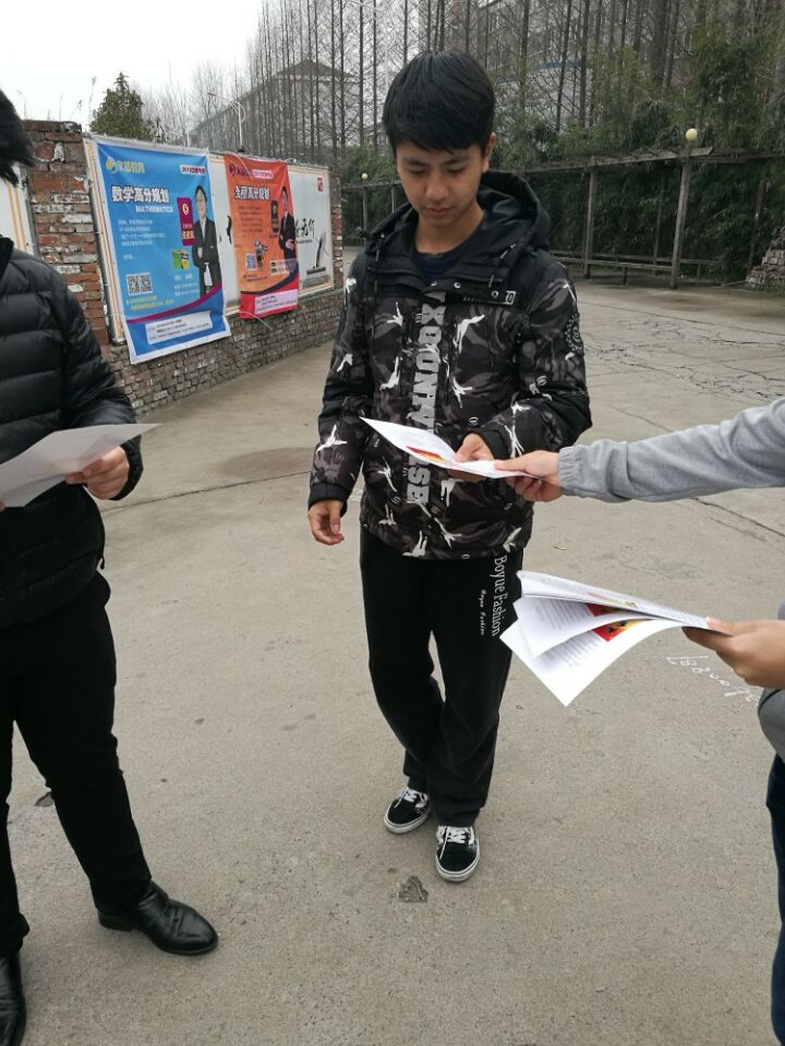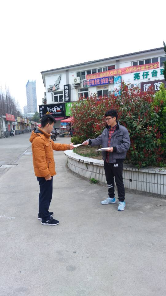 上午10:00,志愿者团队在北门外以个人形式或小组形式通过发传单、内容介绍等形式来开始向街道上的其他同学以及社会群众宣传雷锋的先进个人事迹以及雷锋同志的崇高精神,虽然活动有点累,但是大家一直热情积极。
