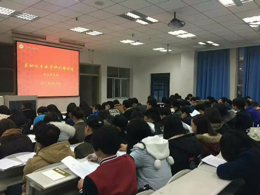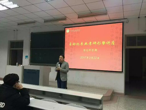 2017年3月22日晚上6点,南通大学杏林学院信息科学部在主教楼422召开自动化专业考研形势讲座。杏林学院副院长、党委副书记刘时方老师、信科学部分团委黄小波老师、宋杰老师以及自动化14-16级全体学生出席了讲座。 首先刘时方老师用言简意赅的语言向全体学生分析了自动化这个专业的优势,并且希望同学们业余时间也要好好学习,不要只满足于本科文凭,鼓励学生们考研。接着宋杰老师分析了专硕和学硕的区别,并向同学们推荐了自动化专业的五大考研方向。最后,宋老师送给大家十六字箴言“坚持理想,把握当下。取舍有度,考研加油!” 本次讲座使所有学生们受益匪浅,尤其是即将要考研的大三学子们,既然决心要考研了就要坚持,坚持到最后就是胜利。其次不要盲目的复习,要有目标、有策略的复习。考研之路布满艰辛,但无论多辛苦都要认真走下去,不抛弃不放弃就是考研精神。
