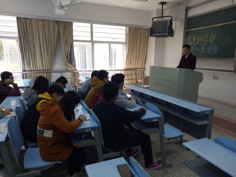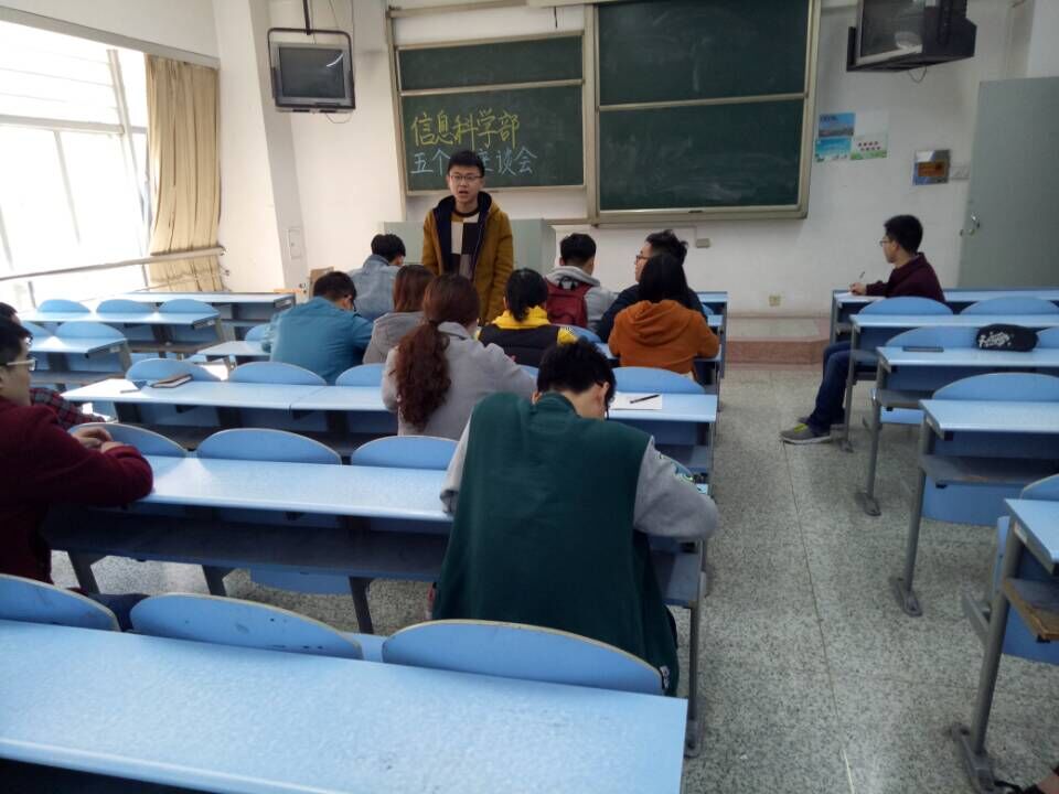 2017年3月27日中午12.30,信息科学部组织部于主教楼107召开“五个一”座谈会。信息科学部14、15级团支书出席了讲座。