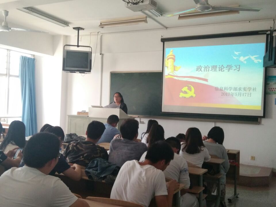 2017年5月17日下午3.30,杏林学院信息科学部学生党支部于主教楼603召开党的政治理论学习,党支部书记季海雁召开主持了会议,支部党员和入党积极分子参加了会议。