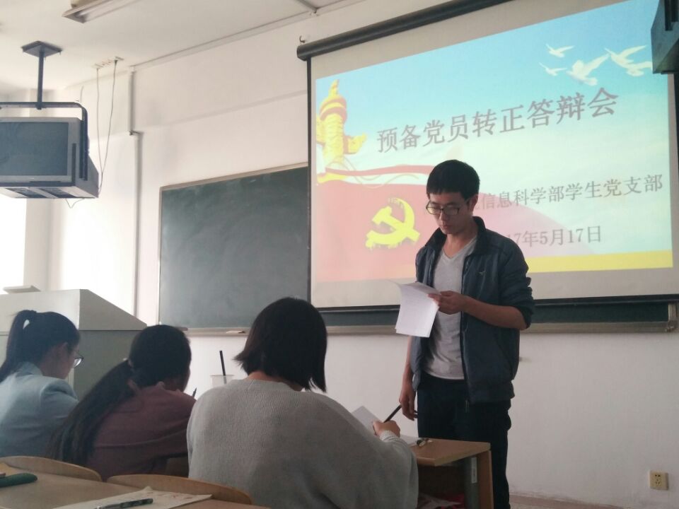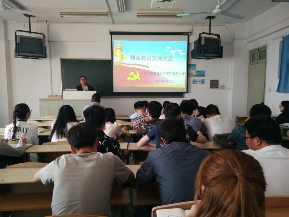 2017年5月17日下午2点,杏林学院信息科学部学生党支部于主教楼603召开预备党员发展大会和预备党员转正答辩会,党支部书记季海雁召开主持了会议,支部党员和入党积极分子参加了会议。