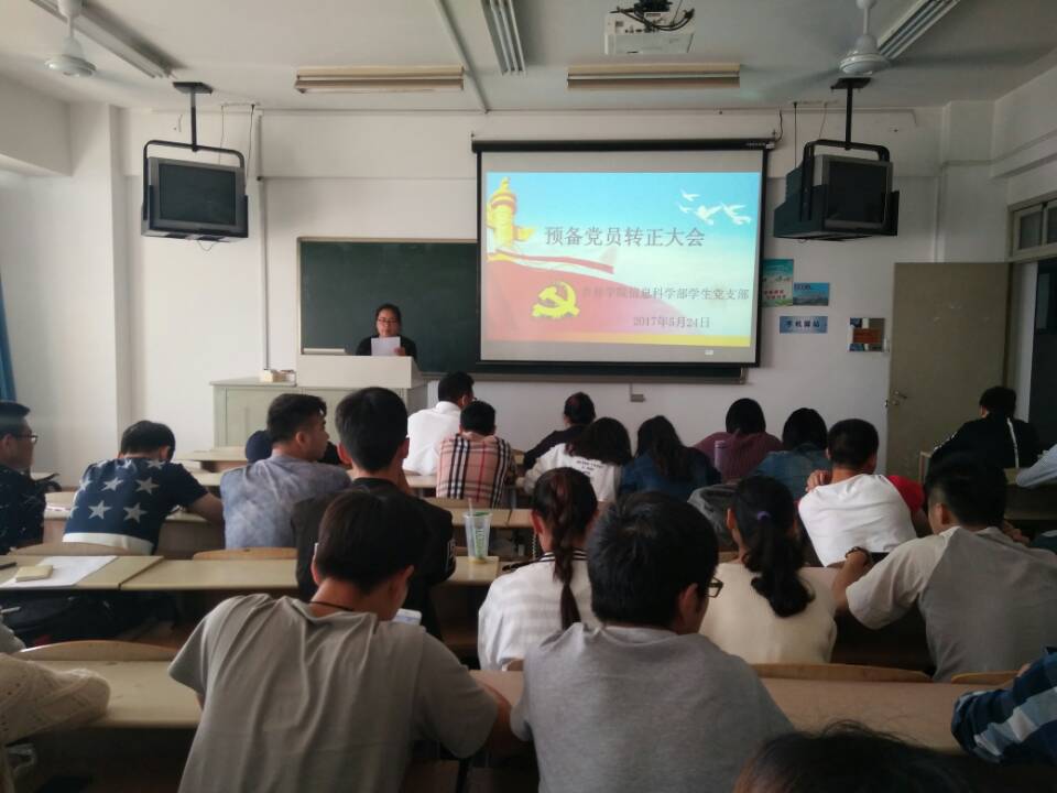 2017年5月24日下午3点,杏林学院信息科学部学生党支部于主教楼603召开正式党员发展大会,党支部书记季海雁召开主持了会议,支部正式党员、预备党员和入党积极分子参加了会议。