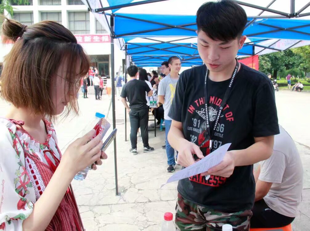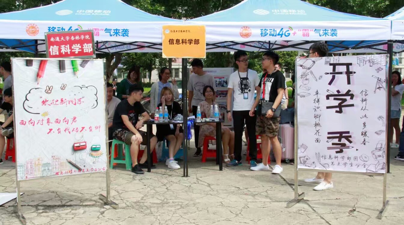 新生进校后,志愿者们积极主动为他们介绍报到流程和学院基本情况,帮助他们搬运行李,新生咨询处也安排了志愿者进行指引。“生活不止眼前的苟且,还有信科和Ta”,“幸得识卿桃花面,信科从此多暖春”,温馨而又充满正能量的迎新标语也迎得了新生和家长的赞赏,许多家长还不禁拿起了手机记录这最美好的时刻。