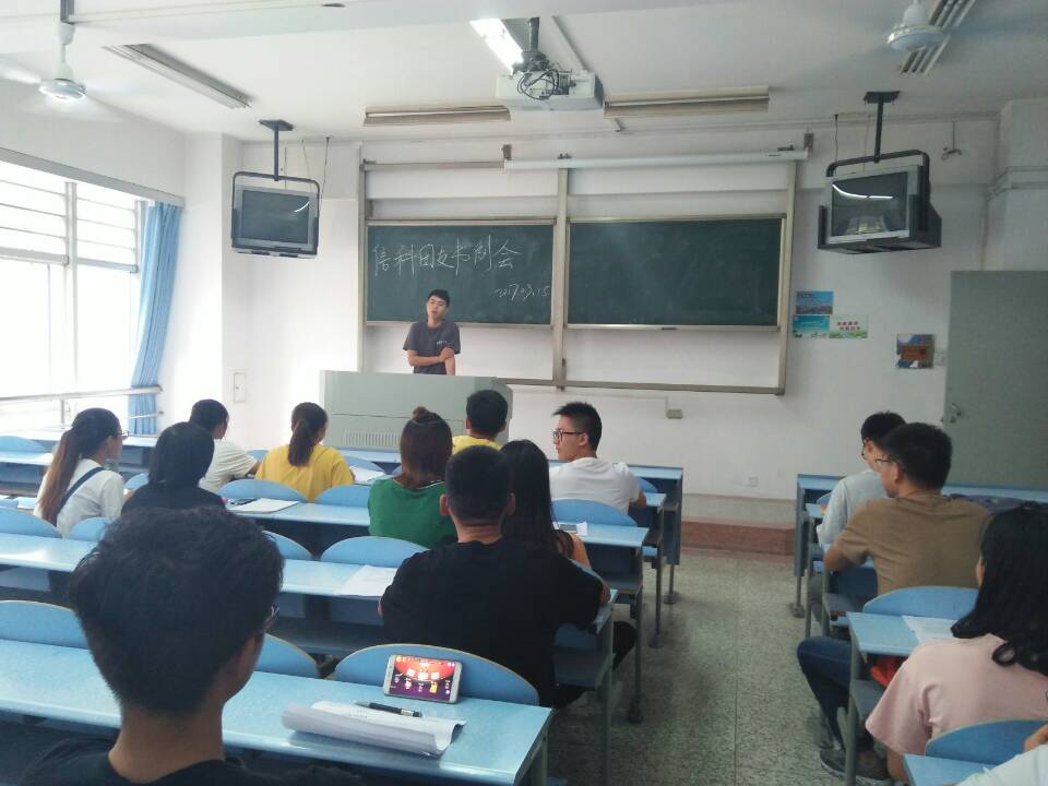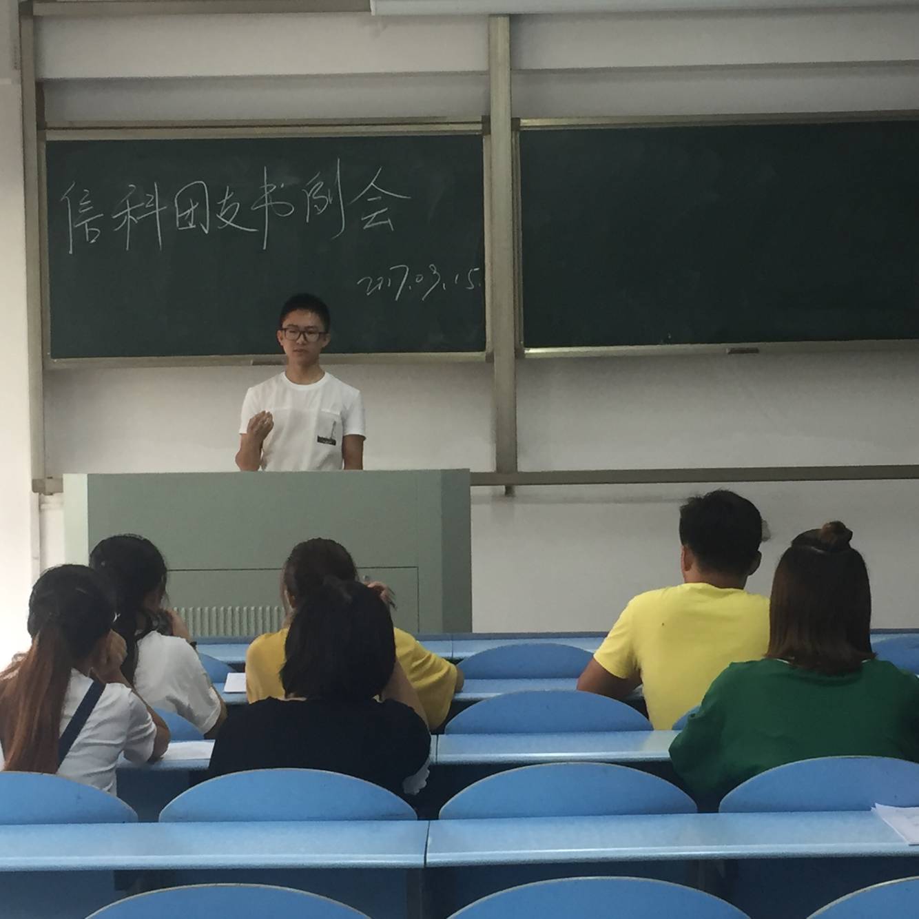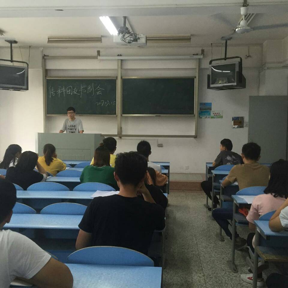 2017年9月15日,为了团支部在新的一年里更好的展开工作,各班团支书更方便的交流和工作,本日下午1点在主教楼107室召开了信息科学部第一次团总支例会,到会的有团总支副书记袁莺箐、副书记居高峰、组织部部长沈保城以及信科学部所有15级团支书。