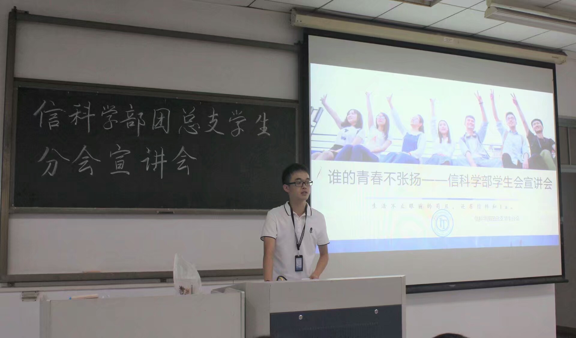 开学伊始,我们学部又迎来了一批朝气蓬勃的新生,为了让同学们在学校能学到更多的知识,也为了学生会工作能更好的展开,信科学部于2017年9月19日下午4点40分,在主教楼323举行了信息科学部学生会招新的宣讲会,从2017级学生中招募学生会新的“血液”。参加宣讲会的有信科学部团总支学生分会主席董力、副主席王路、黄欢、宗晋,团总支副书记袁莺箐、居高峰,学生会各部门部长、副部长和2017级信息科学部所有新生。为保证招新工作顺利的进行,此次宣讲会分为四个阶段。