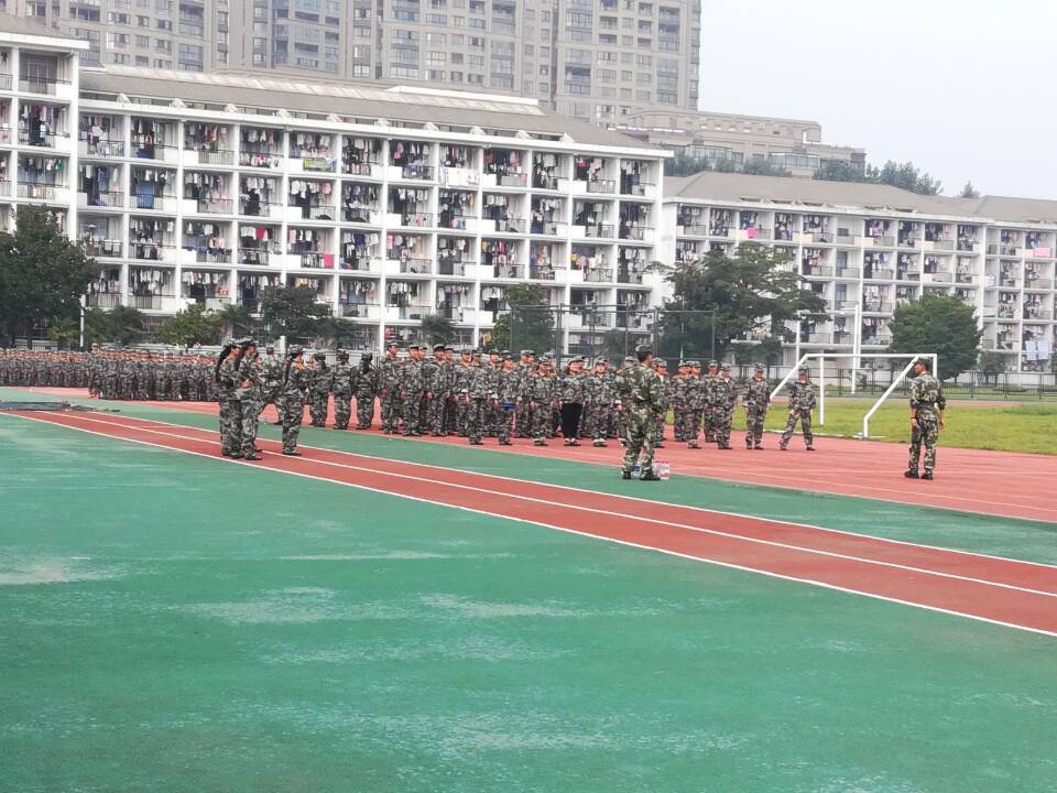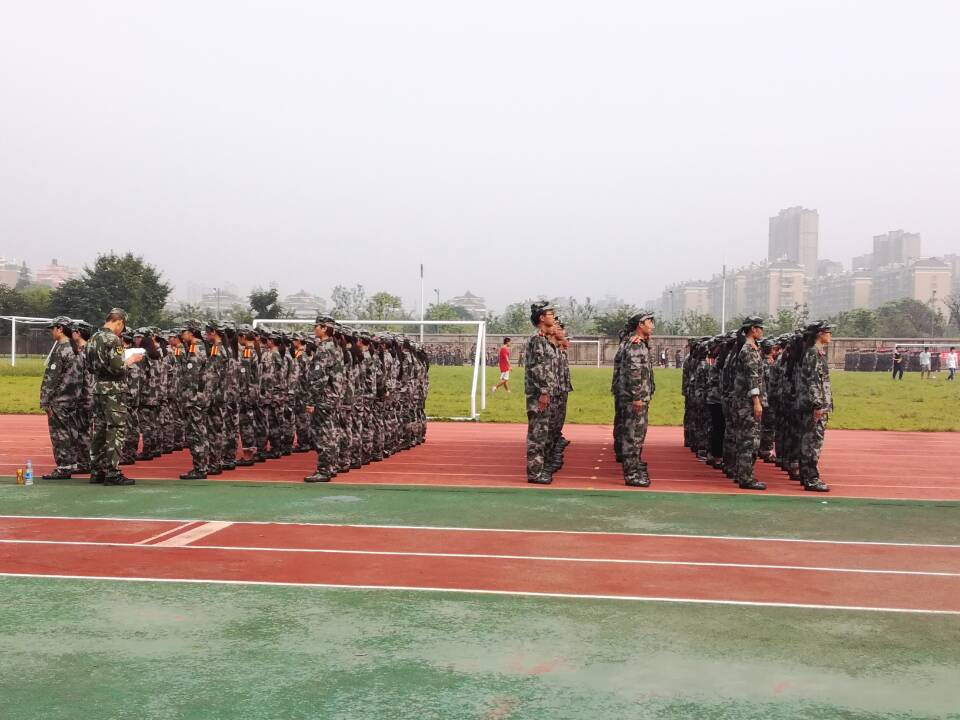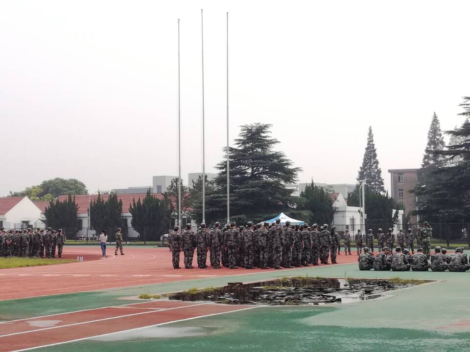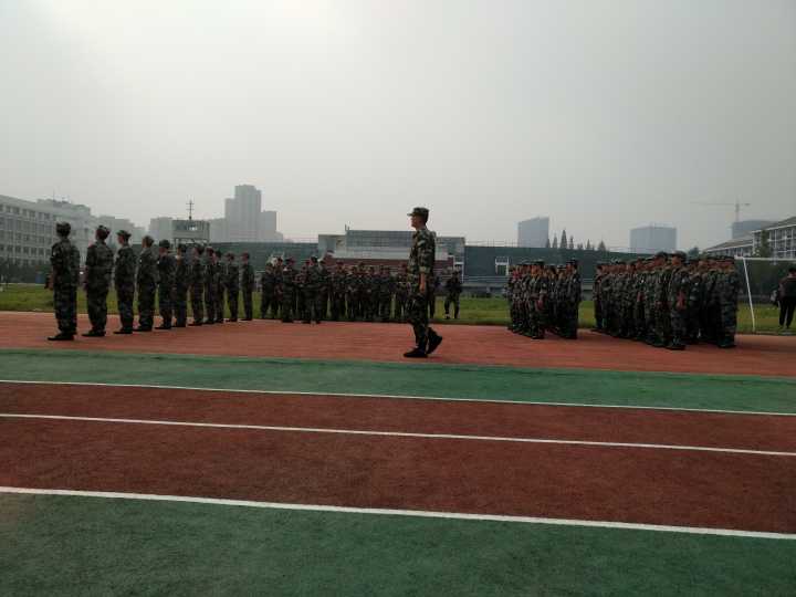 军训开始第二天,一场及时雨带去了炎炎烈日,送来了阵阵清凉,放眼望去绿油油的操场上,一群身着迷彩的活力青年整齐地站着军姿,有力的迈着正步,喊着响亮的口号,唱着激昂的军歌。各班的教官在一旁认真看着自己的学生训练,正在站军姿的同学们一个个犹如白杨树,屹立挺拔,即使额头的汗水滴下,他们依然一动不动;他们会在迈正步的同时喊着各班的口号来振奋人心,休息的时候也会通过嘹亮的军歌给自己打气。