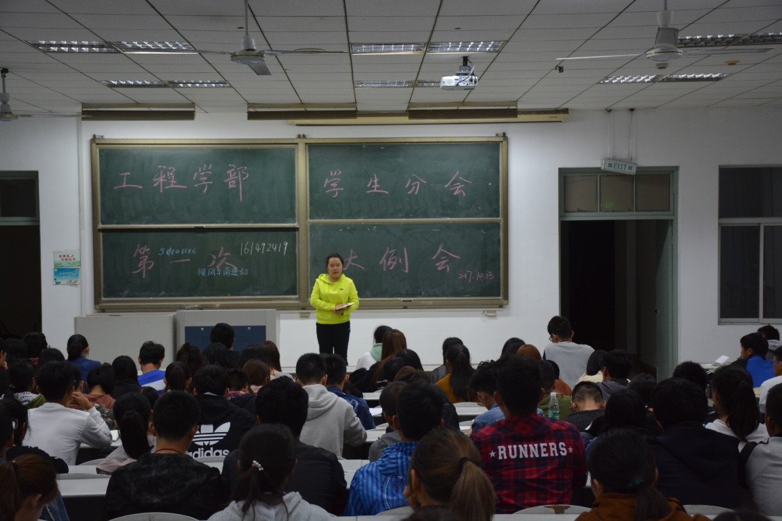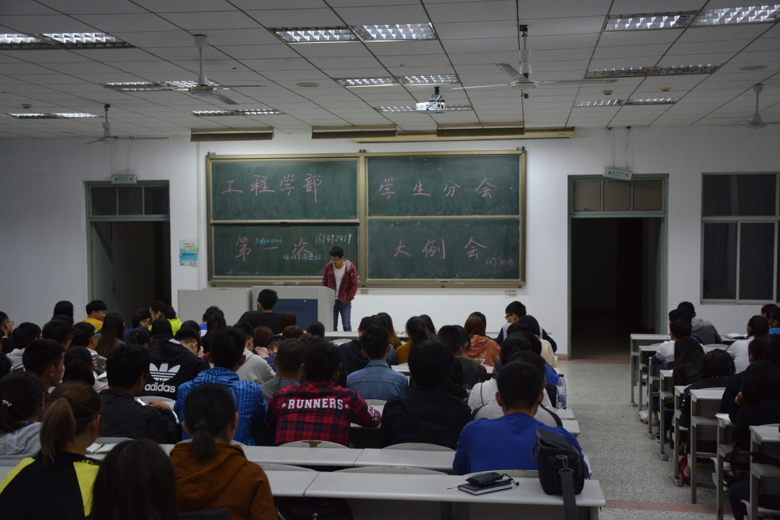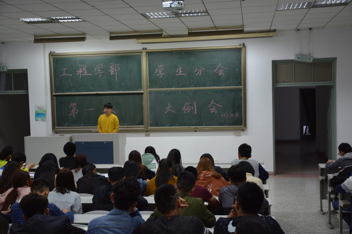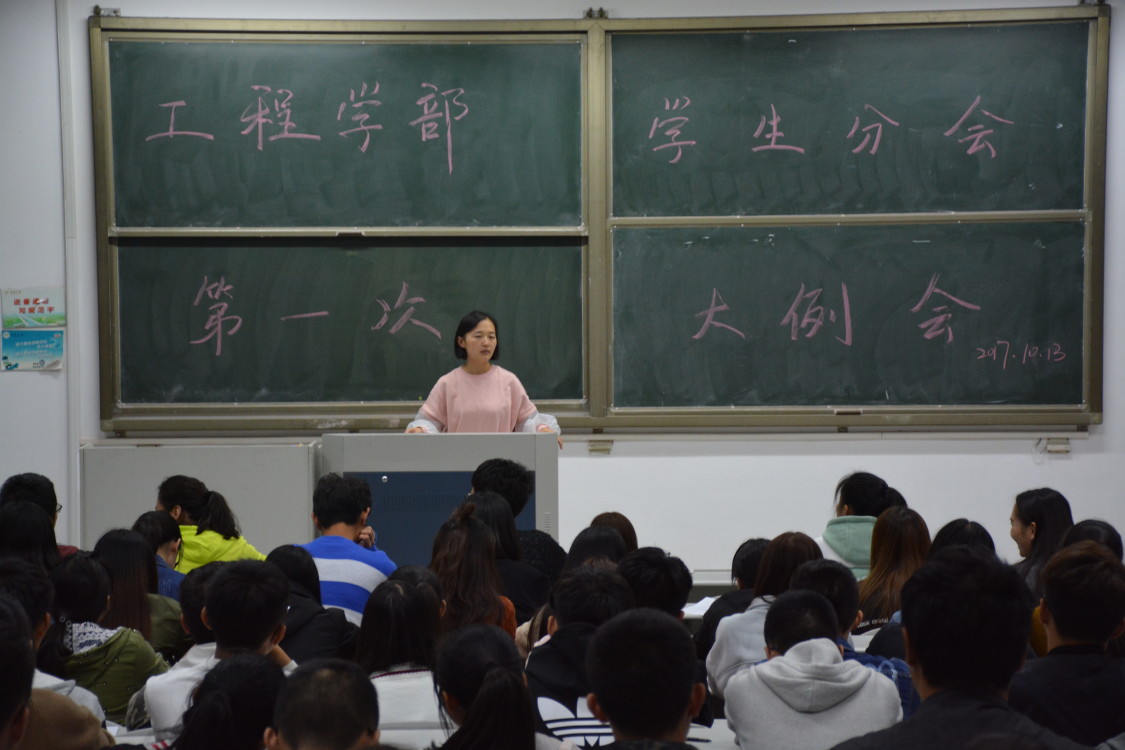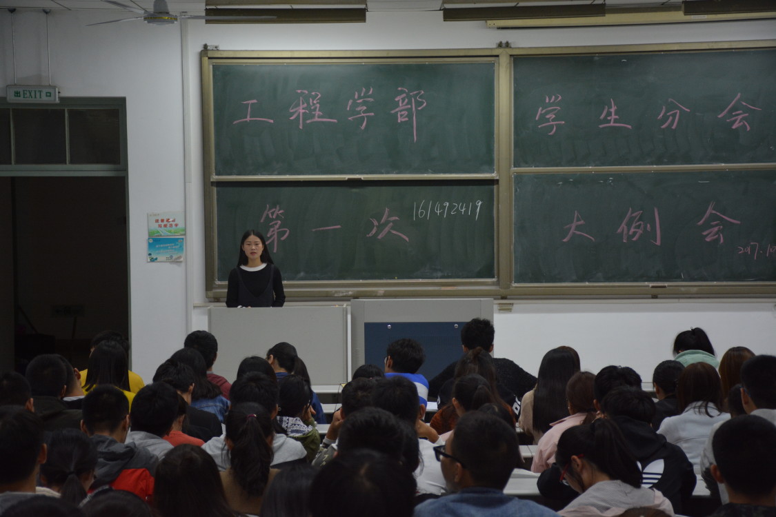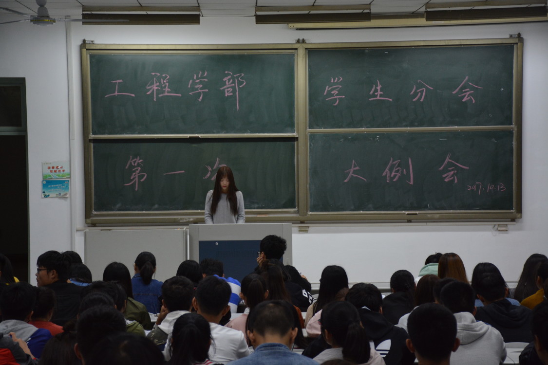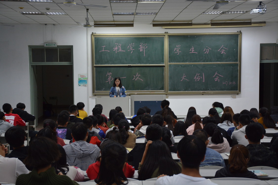 2017年10月13日,17级工程学部团总支学生分会经过了的宣传、招新、面试等前期工作后,在主教楼323召开了第一次全体例会。例会由黎鸣主席主持,分会领导邵唯慧老师、各部门部长及新生干事等参加本次例会。