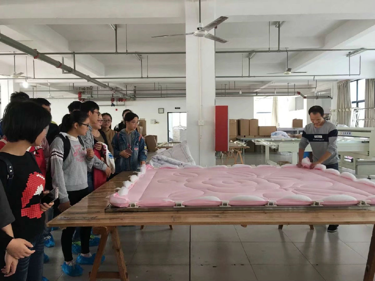 上午九点,活动正式开始。首先,解说员带领同学们依次参观了裁剪车间、印花套间包装车间、被子加工车间、产品仓库、展厅,让同学们眼花缭乱,大饱眼福,了解了一家大型企业的实际运作情况。与此同时,解说员清晰的讲解了如何生产纺织品的每一个环节,多角度解读纺织过程,让同学们对纺织品有一个更深刻的认识。其次,他还向同学们传授一些实际操作经验以及正常公司的运作情况,使同学们受益颇多,颇为感慨。最后,同学们在江苏柏琳家用纺织公司门口合影留念,本次活动圆满结束。