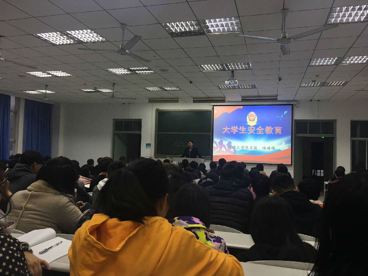 为进一步增强同学们的安全意识,11月21日下午四点十五分,信息科学部于主教楼422开展了大学生安全教育讲座。由南通大学保卫处陆建锋老师主讲。