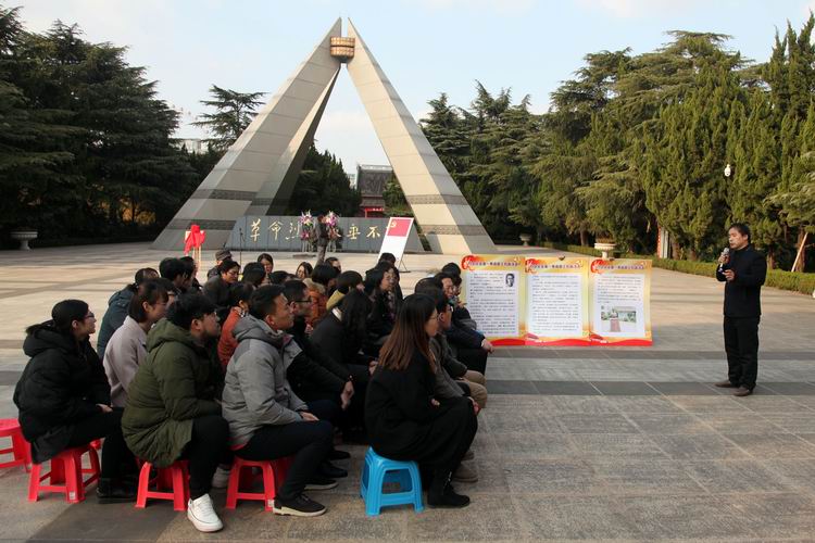 杏林学院师生代表和城北村社区党员代表向庄严肃穆的烈士纪念碑敬献了花篮,深深的三鞠躬里表达了对国耻民殇的铭记和对仁人志士的缅怀。随后全体人员高举右手,重温了入党誓词,铿锵有力的誓词中表达了新时代共产党员对于实现中华民族伟大复兴的铮铮壮志。思政公共课教师党支部书记陈赟作为教师代表发言,她表示要继承烈士精神,把爱国之情和报国之志化为效国之行,勿忘国耻,砥砺前行,牢记使命,不忘初心。随后,大家认真聆听了南通地区第一位中共党员吴亚鲁的革命事迹。杏林学院党委书记陆伟家最后总结到,在这个南京大屠杀80周年的国殇日里,本次活动具有了更加特殊的意义,同时也是杏林学院党委学习贯彻十九大精神的重要体现,他勉励大家在各自的岗位上,以吴亚鲁烈士为榜样,克服困难,牢记誓词,将个人理想与国家事业紧密结合,同时,进一步加强校地深度融合,同心协力做好大学生思想政治教育工作。