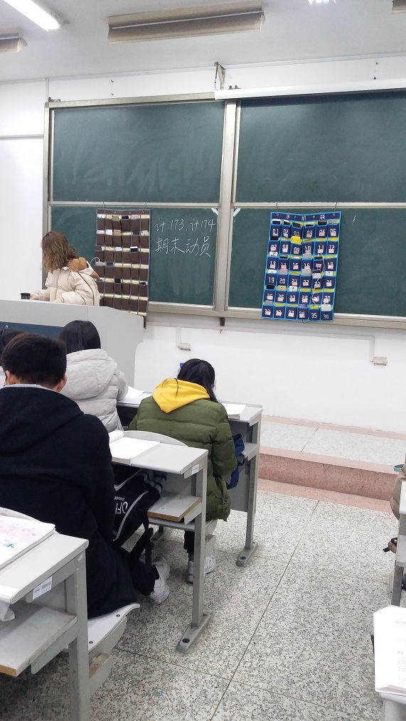 首先班助给大家介绍了些缓解临考紧张情绪的方法,接下来班助又给大家讲了一些期末临考复习技巧,同时让有疑惑的同学说出来一起为所有同学解惑,最后班助为大家加油打气祝愿所有同学在期末取得好成绩并且严肃强调了诚信考试,拒绝作弊。