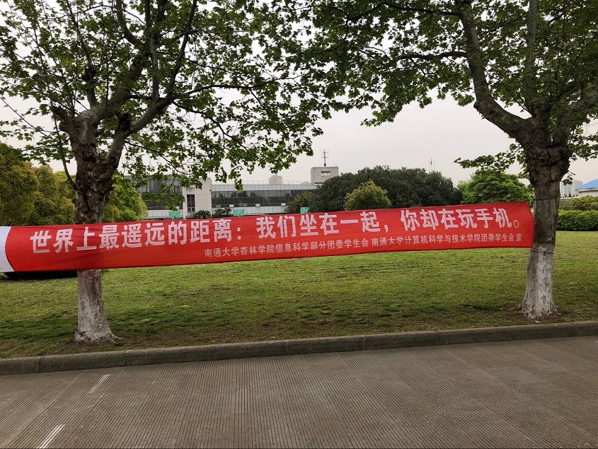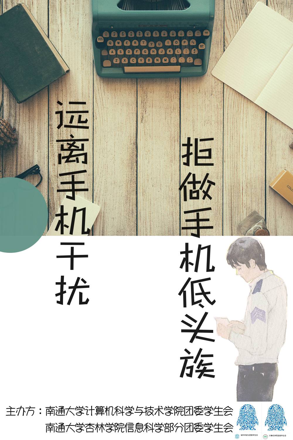 世界上最遥远的距离:“我们坐在一起,你却在玩手机”。由于电子产业的迅速发展,人们生活水平的普遍提高,手机已成为人们生活中必不可缺的一部分。而如今,手机的高频使用已严重影响了我们的日常生活,这种情况对于我们大学生来说尤为突出。为此,我们信科学部分团委学生会协同南通大学计算机学院团委学生会共同举办为期一周的“远离手机干扰,拒做手机低头族”倡议活动。我们共同倡议:“让我们试着远离手机干扰,正确对待手机用途; 让我们花更多的时间在有意义的事上,将目光停留在爱你并且你爱的人的身上。低头族,请停下来,享受美丽,享受人生; 放下手机,你会发现世界是那么的与众不同,绚丽多彩!”,PS:我们将在本周三9:00-17:OO进行奶亭签名活动,