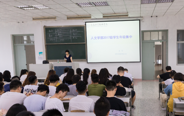 2018年9月2日下午4点,人文学部17级全体学生在主422进行年级集中,进行新学期开学的首日教育,会议由17级辅导员王宁主持。