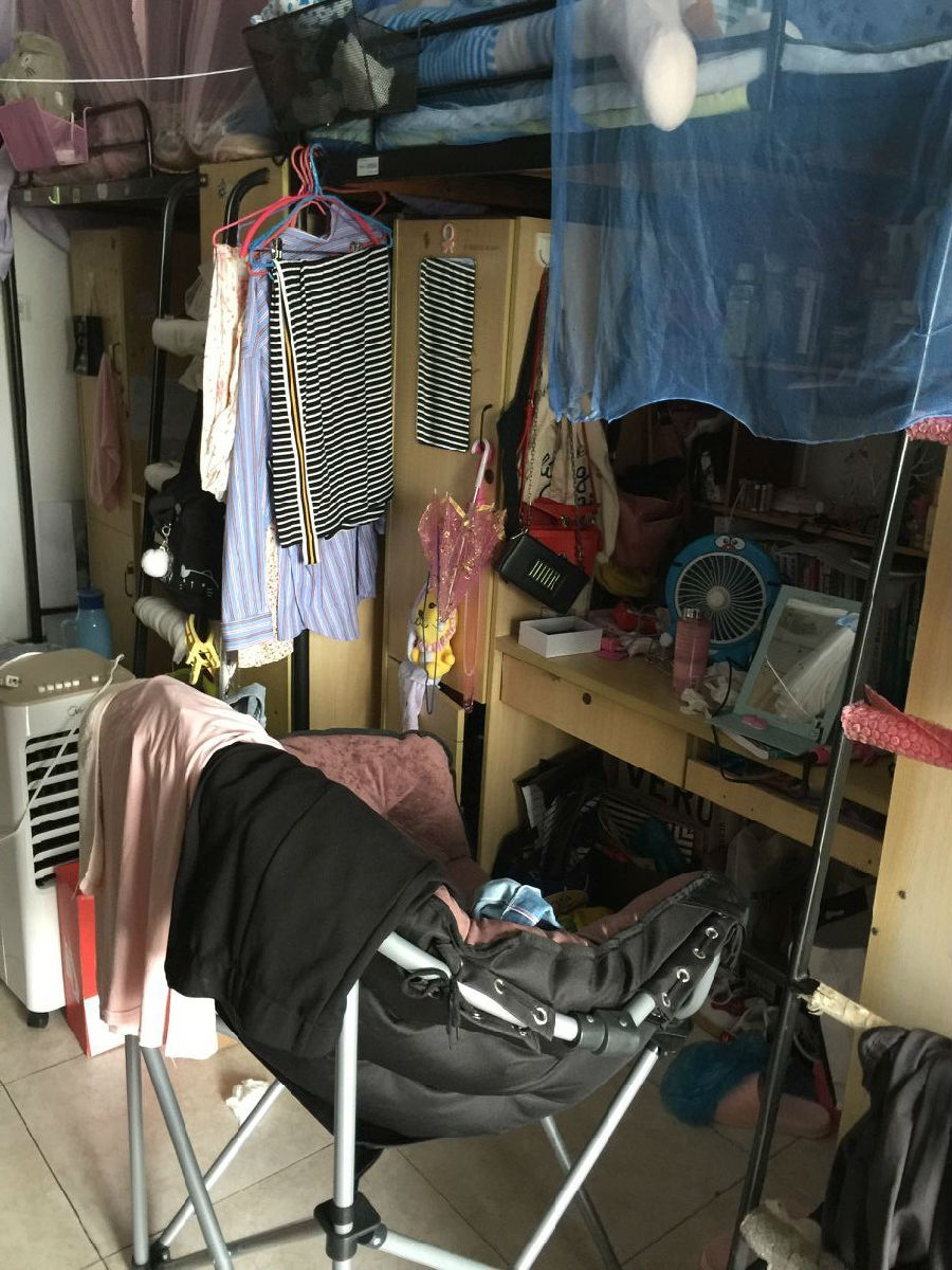 9月18日下午,人文学部16级辅导员崔老师,跟随女生公寓14号楼管理员一同到16级所在宿舍区进行安全用电和卫生检查。