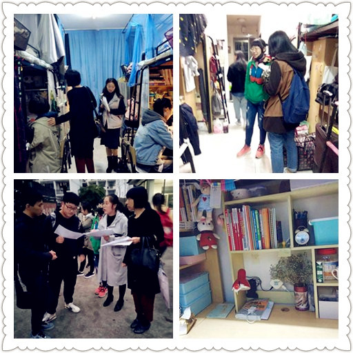 2018年11月9日人文学部宿舍大检查,晚上五点多,学部辅导员王宁、吴筱琳、金晨老师带领着学生干部分组下宿舍,15级毕业班女生宿舍除东西较多整体情况尚可,一部分人已经回老家实习,一部分人在南通市区实习尚未回来,留在宿舍的人较少,大多是考研的;16级女生宿舍检查情况良好;17级女生宿舍未查到违章用电情况,但使用床帘较多。辅导员们现场对各年级学生进行了全面的安全教育,尤其是临近消防日之际,老师们尤其强调了用电和消防安全。(吴筱琳)