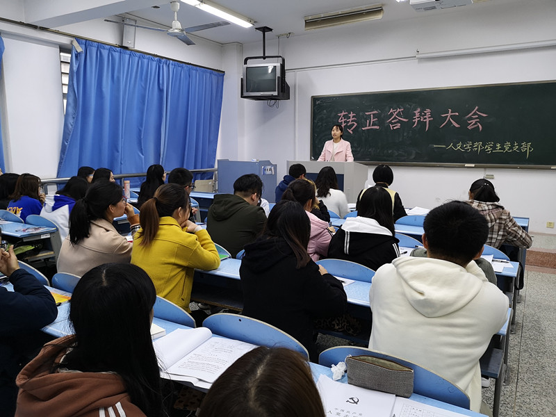 2018年11月14日下午,根据《南通大学学生党员发展工作“三投票三公示一答辩”实施办法》的要求,杏林学院人文学部学生党支部在钟秀校区主205教室召开了支部会议,对2018年下半年申请转正的同学进行公开答辩。会议由支部书记王宁老师主持。答辩小组成员包括由支部5名正式党员组成。
