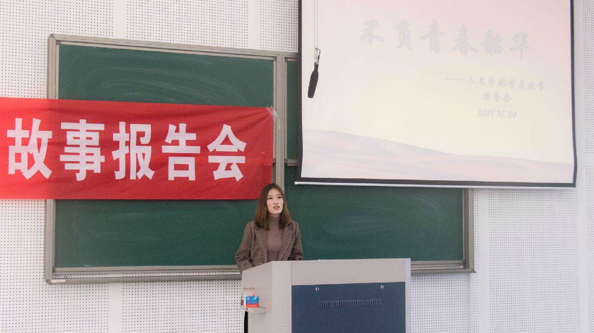 人文学部第一场青春故事报告会于2018年10月24日下午三点在启东校区JX7-8-103教室正式举行。15届吴云凤根据自己大学中积累的经验和亲身经历给同学们描绘了大学中丰富多彩的生活,也告诉我们,大学到底怎样才算得上有意义,参加本次活动的人员包括人文学部各专业同学和学部学生会负责人。