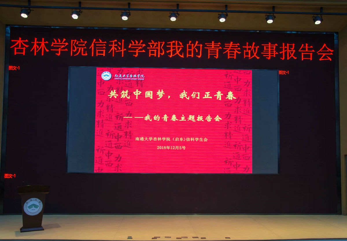 2018年12月5日中午南通大学杏林学院信科学部为广大信科学部学生开展了“我的青春故事”报告会,目的是为给广大学生开阔视野,理清未来的规划。