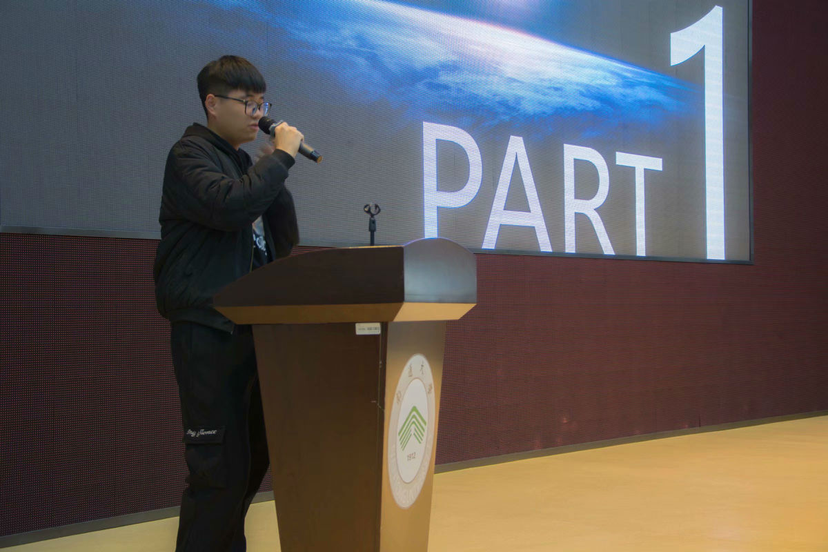 第二位演讲的是朱亮源学长,他以“青春”为题用生动的演讲诠释了何为“勤于当下,不悔青春”这八字。他将成功化为艰苦劳动和正确方法两段来分别用学习、生活方面来讲解。在最后以“大学的时光是美好的,请善待你现在所拥有的青春,不要在离开校园步入社会的那一刻才发现自己大学四年的青春除了虚度以外一无所有”结束了他的演讲。