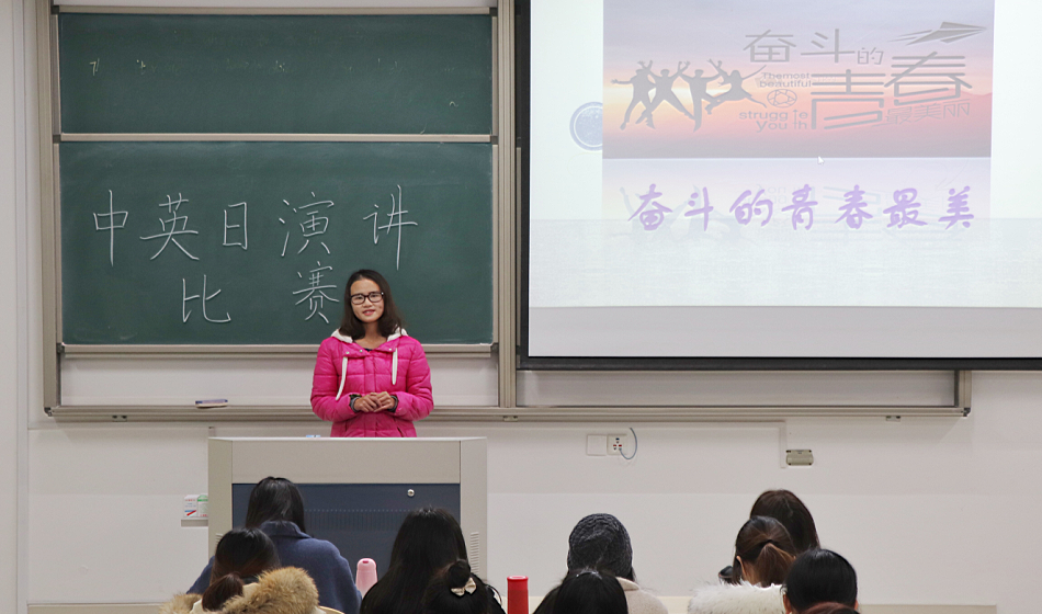 为丰富同学们的校园生活,增强同学们对世界文化的了解,2018年12月7日下午,我院启东校区人文学部在教学楼JX7-8-306教室开展中英日三语演讲比赛。