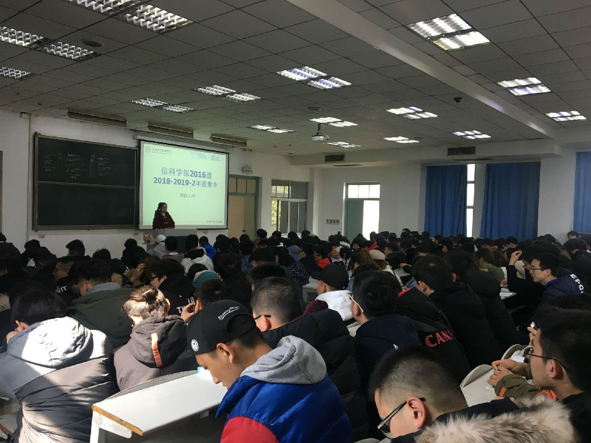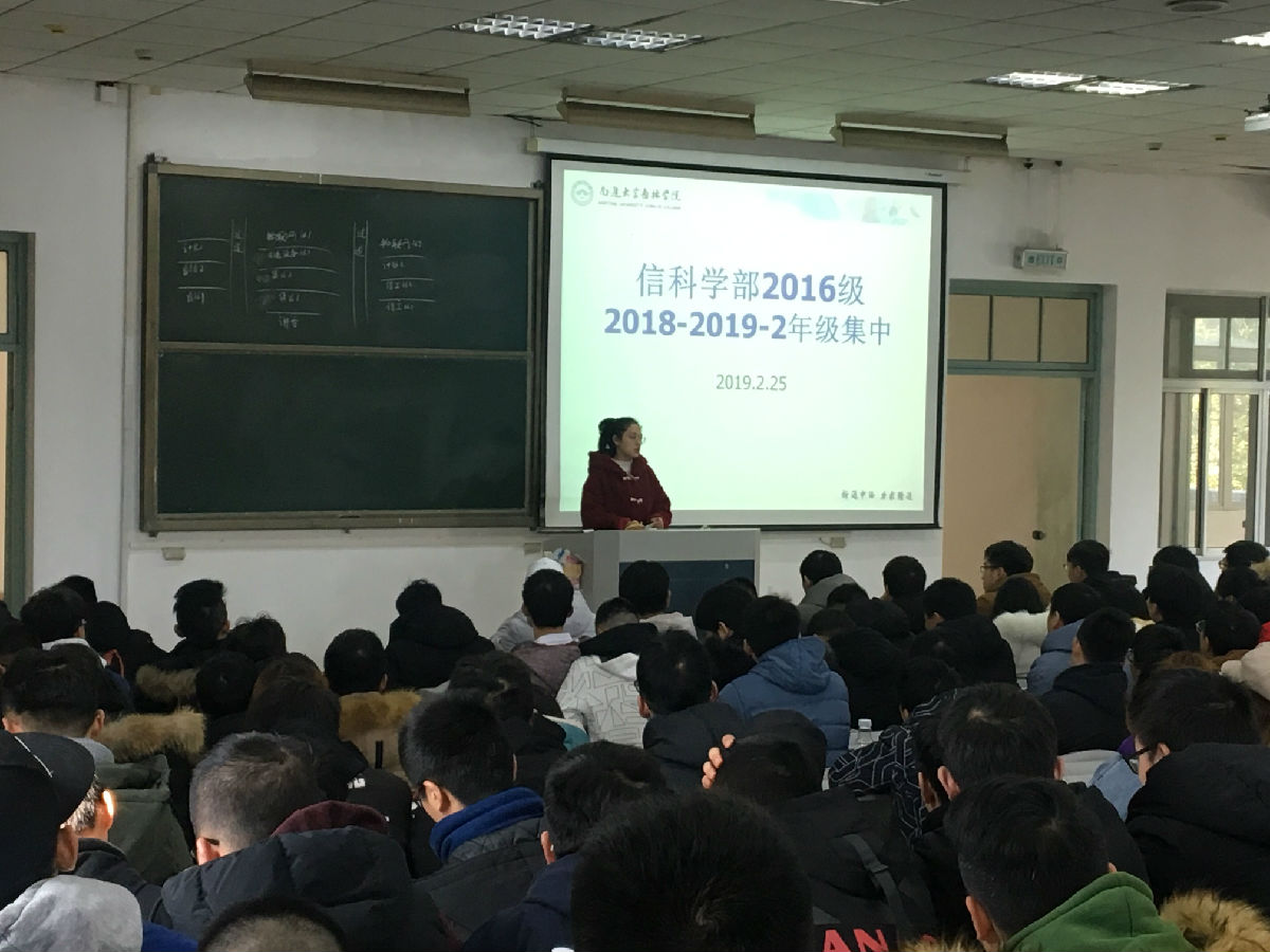 2月25日中午12:15,在主教楼220教室,信科学部16级年级大会正式开始。本次会议由信息科学部辅导员陆潇潇老师主持,16级全体同学参加。