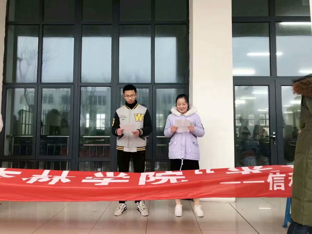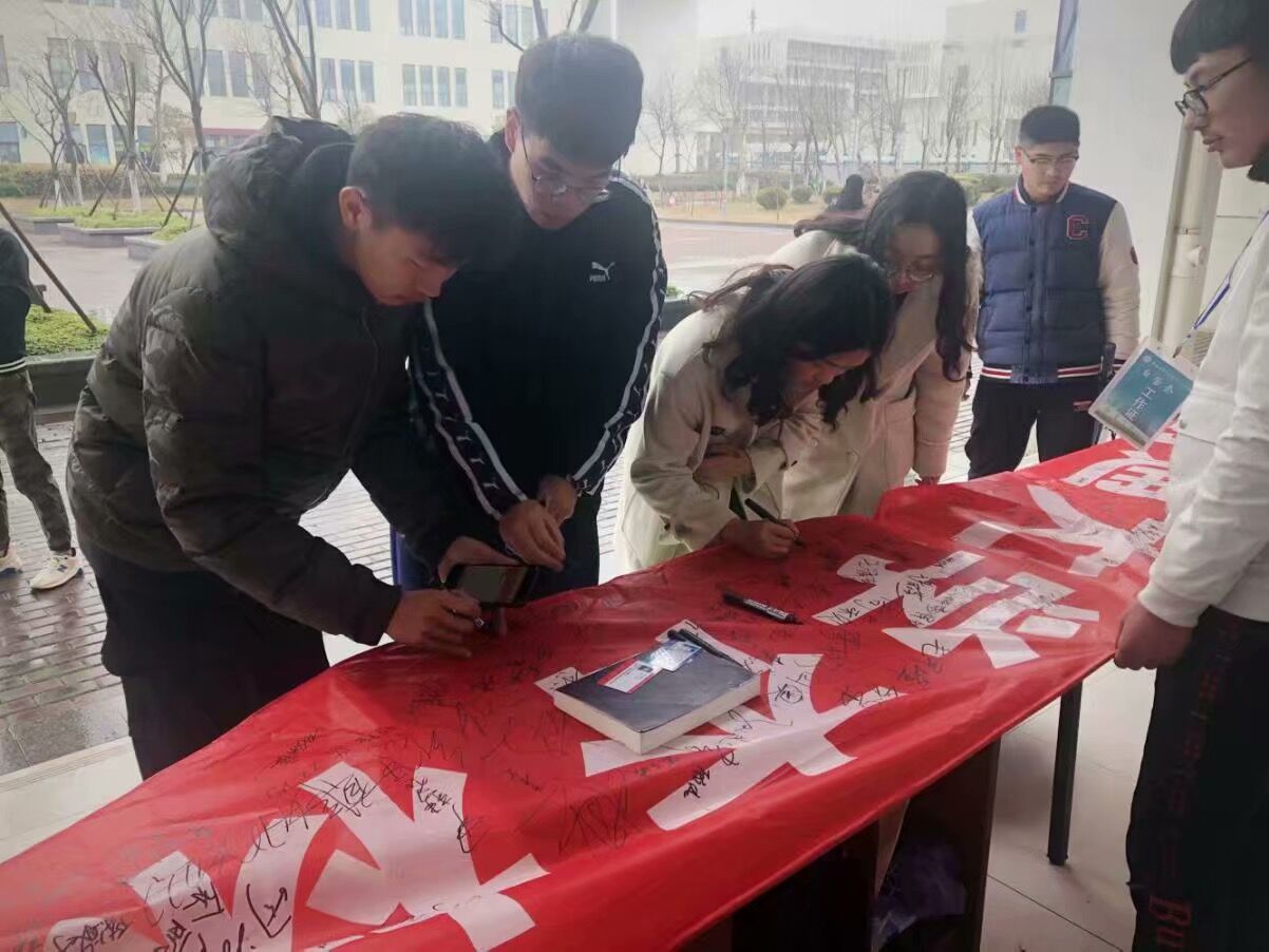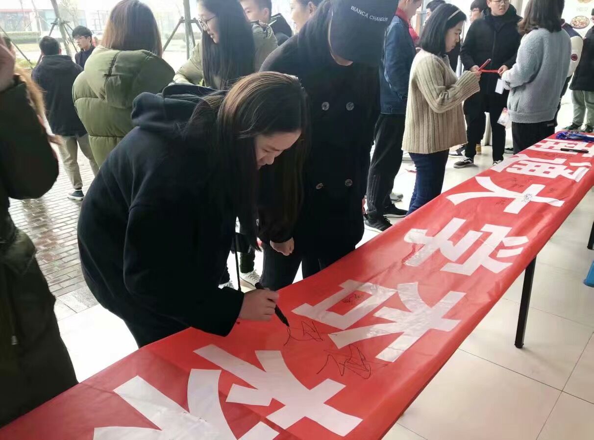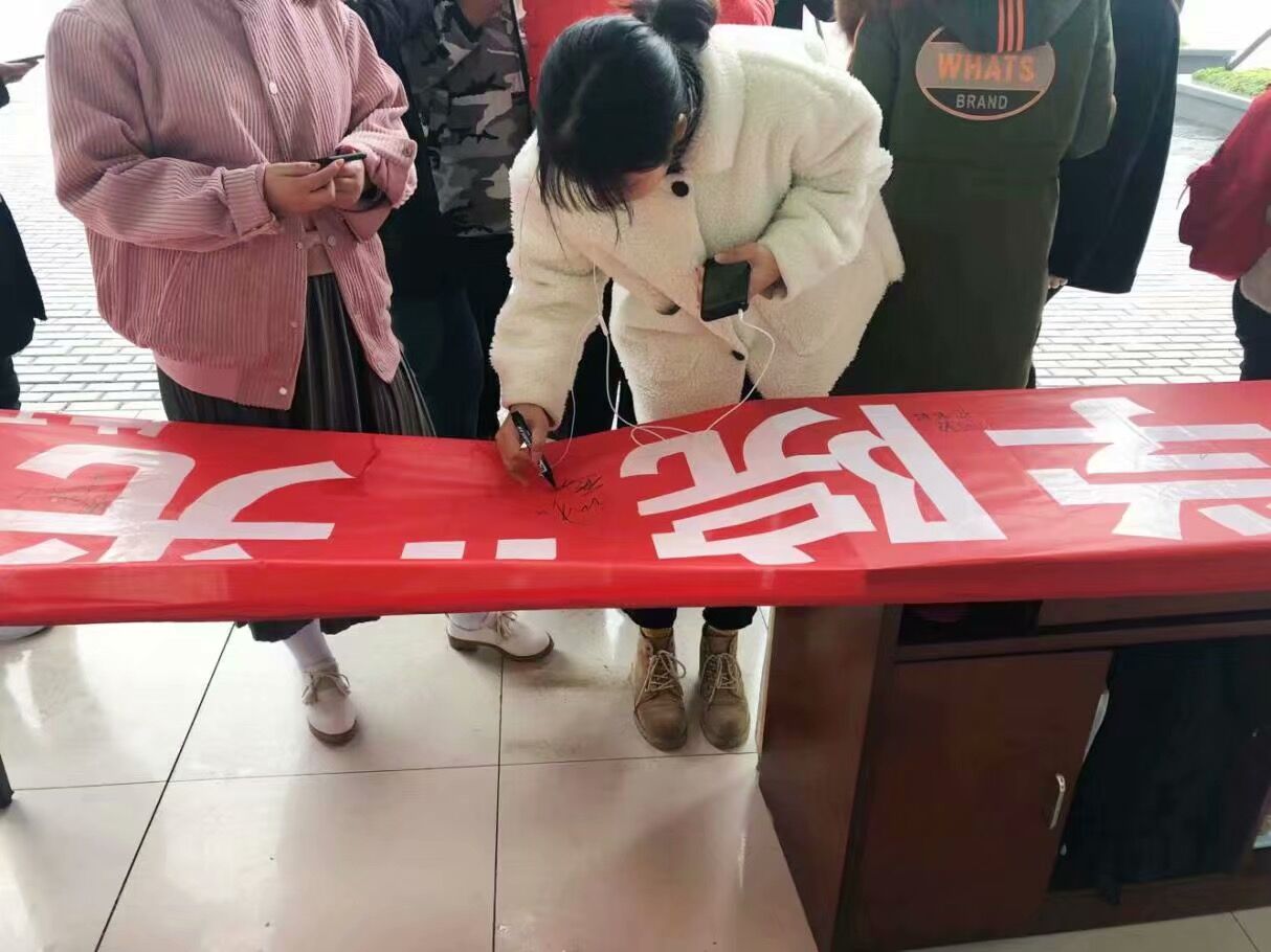 尽管天气寒冷,不少同学仍然冒着风雨,走到食堂在条幅上郑重地签下自己的名字,这既是对雷峰的敬仰,也是一份庄严的承诺。最后本次活动,以志愿者们在食堂门口的合影落下帷幕。