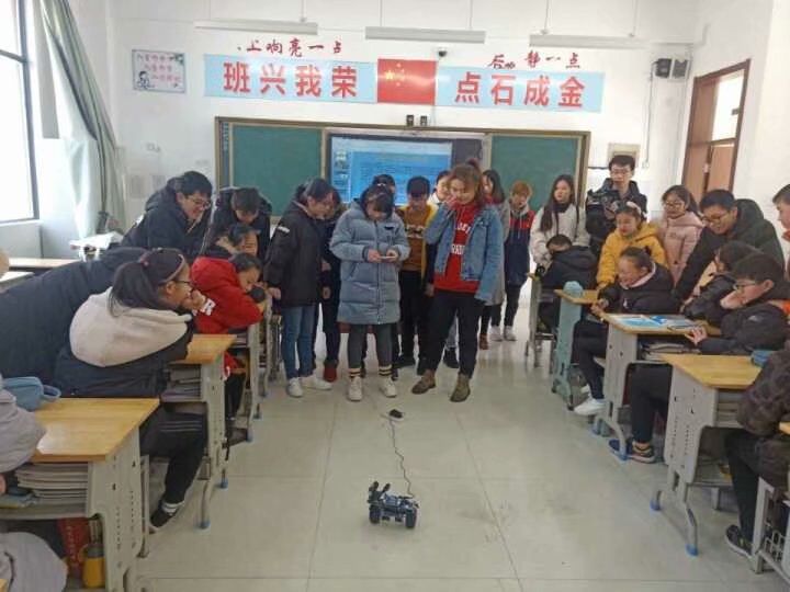 在主持人的介绍下同学们认真的倾听了雷锋的故事并跟着主持人一起朗读了雷锋名言,互动“讲述自己身边的雷锋”故事,让同学们细心观察身边乐于助人的事迹。雷锋前辈给同学们的启示不仅是助人为乐,最重要的是树立正确的三观,为社会做贡献。时代的发展离不开科技的创新,利用好科技可以更好的帮助更多人。随后,主持人向同学们介绍了南通大学杏林学院科学与技术协会,并展示了此次活动带来的科技成品——舞蹈机器人和智能小车。舞蹈机器人外形是用3D打印技术制造,拥有小身板,结构很简单,但它的舞步却非常的灵活。跟随着音乐它跳着迈克尔·杰克逊的太空舞步,吸引了同学们的目光,无形之中增加了同学们对现代科技的兴趣。接下来便是重头戏智能小车的展示,智能小车由无线连接,通过手机就可以轻松对其进行操作,引来了同学甚至是老师的跃跃欲试,在我校科协成员指导下同学们用手机便能轻松掌控智能小车,满足了同学们对科技的好奇,让同学们感受到科技就在身边。智能小车在军事侦探,环境探测与工程检测、智能家居等方面均能发挥很大作用,具有深远的研究意义。在我校科协成员带领下与同学们进行互动环节,让同学们切身感受到科技的魅力。