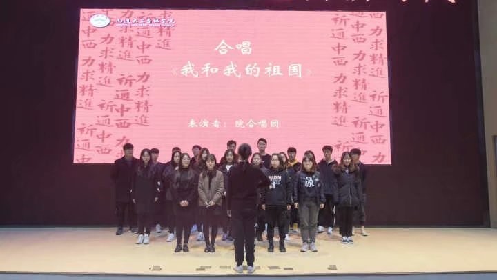 伴随着院合唱团的合唱《我和我的祖国》进入尾声,祖国是东方的明珠,是地平线初升的太阳,祖国在你心中,在我心中在每一个人的心中。