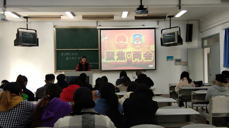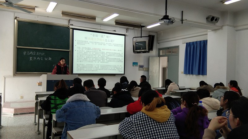 2019年3月15日中午,杏林学院人文学部学生党支部(领航学社)在主教楼113教室开展了“学习两会知识聚焦两会议题”新学期第一期微课堂学习活动。领航学社全体入党积极分子出席,本次活动由李浩妍主讲。