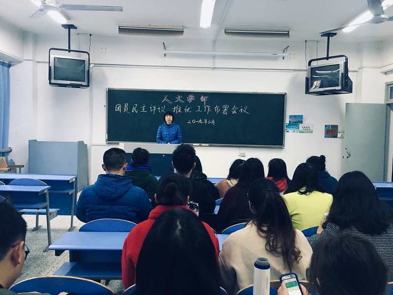 3月15日,人文学部团员民主评议、推优工作部署会议于主教楼113顺利举办,人文学部学生党支部书记王宁、分团委书记陈云出席会议,人文学部钟秀校区2016、2017级全体团支书参加会议。