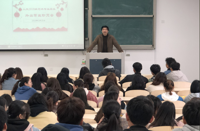 3月28日中午,南通大学杏林学院副院长康卫东带领艺术专业老师一道为人文学部艺术专业外出写生学生做相关动员。