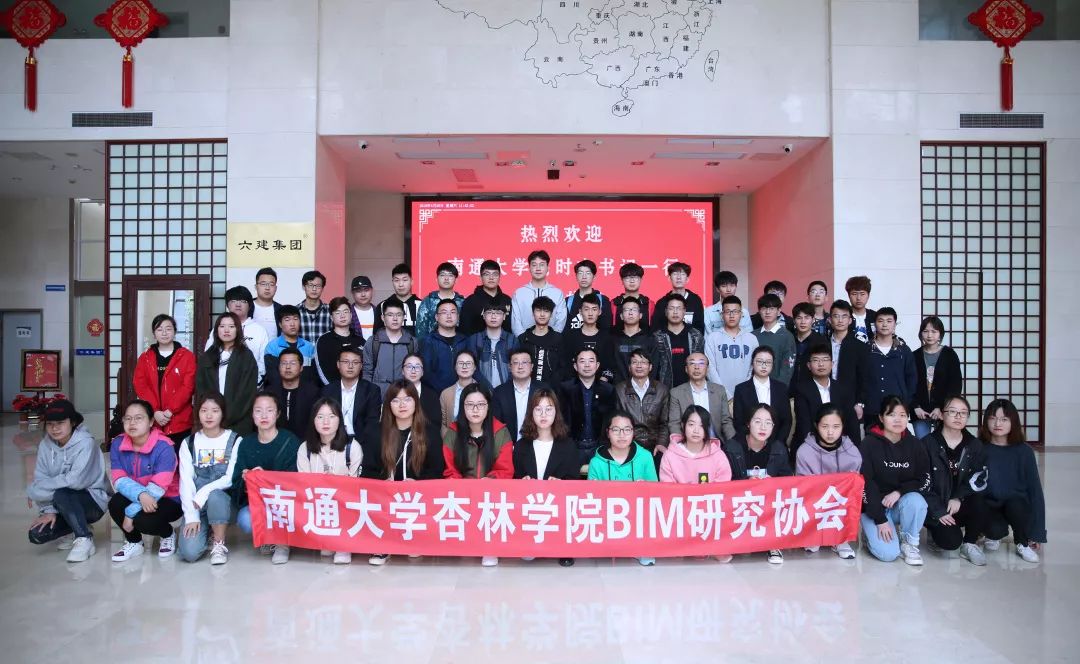 2019年4月20日,南通六建&南通大学杏林学院“产学研”交流会在南通六建20楼会议室召开。参加会议的有如皋市住房和城乡建设局副局长刘建华、南通六建总裁沈卫东、企业策划管理中心副总监刘斌、BIM公司总经理马秋艳、动画工作室总监徐海东、培训中心总监陈成,以及南通大学杏林学院党委副书记刘时方、BIM指导老师倪鑫霞、辅导员印红伟和47名工程管理专业的学生。南通大学杏林学院师生首先参观了南通六建荣誉室及BIM公司,随后至20楼会议室观看了南通六建BIM技术应用视频。