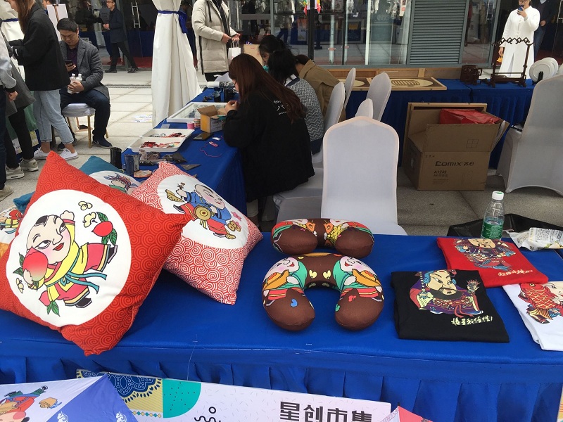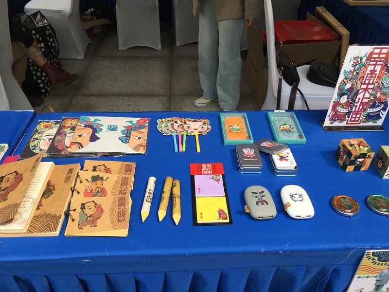 本次展出及销售的文创产品全部由人文学部相关专业师生设计制作,作品的主要元素是南通版画。南通版画历史悠久,造型美观独特,不仅是南通民间艺术智慧的结晶,同样也是南通文化的名片之一。在人文学部各专业同学的创造力和转化力下,本次展出的文创产品十分丰富:有房屋装饰的漆画,有袖珍可爱挂饰等小物件数十个种类三百余件作品。南通木版画从跳出了原有的载体,出现在了笔记本、充电宝、抱枕和扑克牌等物品之上,形成了独特的艺术效果。