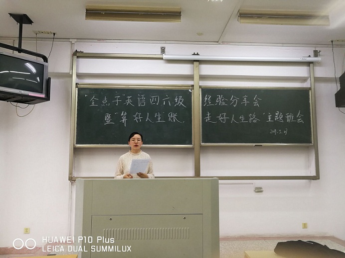 5月27日下午,工程学部2017级在主609教室召开“金点子”英语四、六级经验分享暨“算好人生账,走好人生路”主题班会,班会由年级辅导员王芳老师主持。