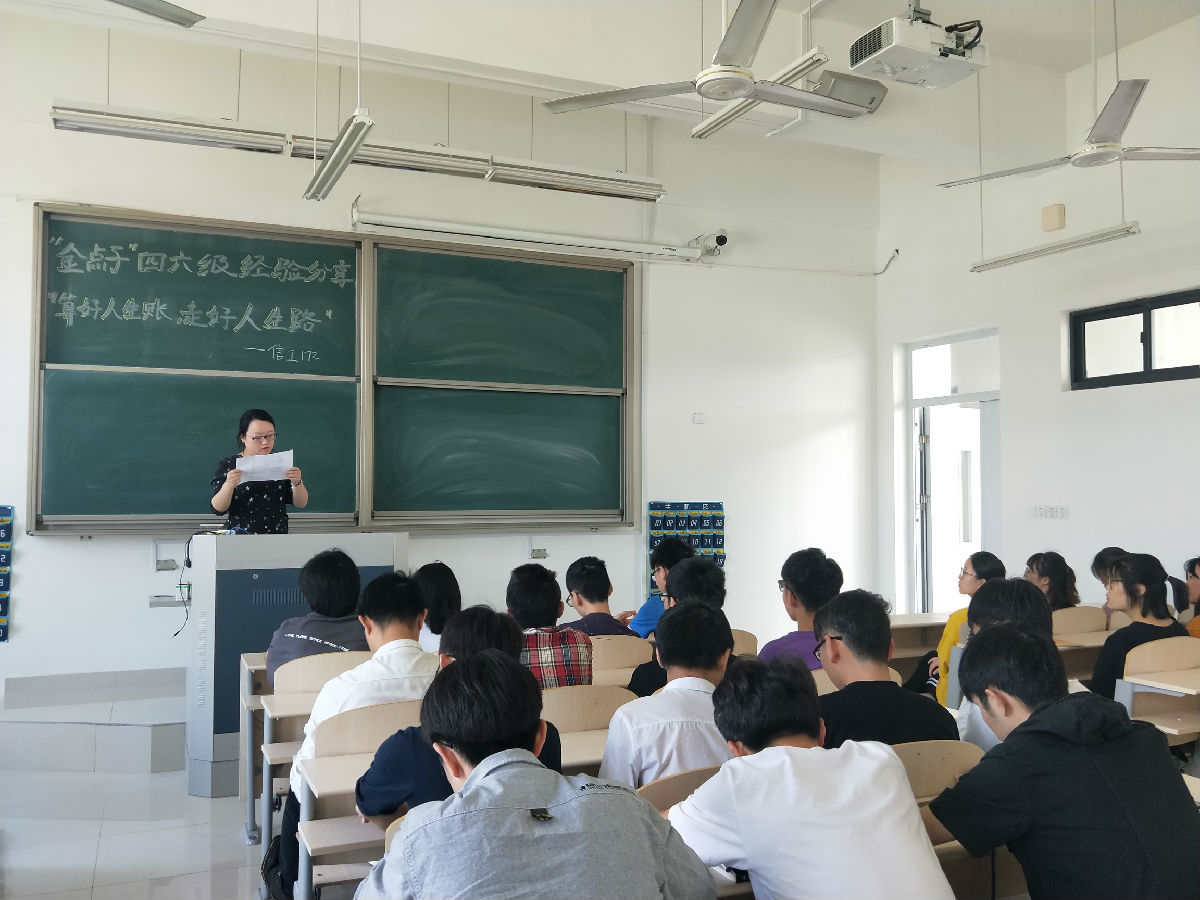 2019年5月26日星期天上午十一点,电子信息工程172班在3-4教学楼206教室召开了“金点子”四六级经验分享暨“算好人生账,走好人生路”主题班会。