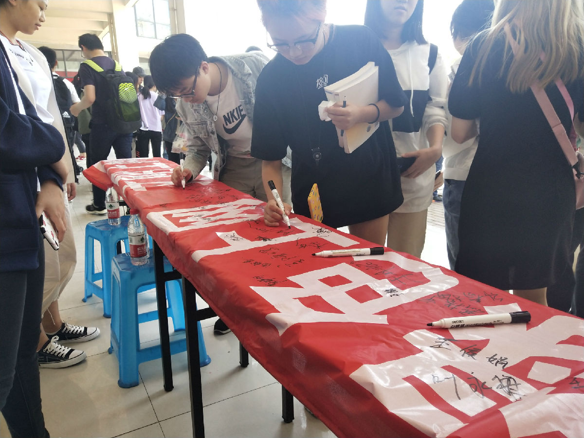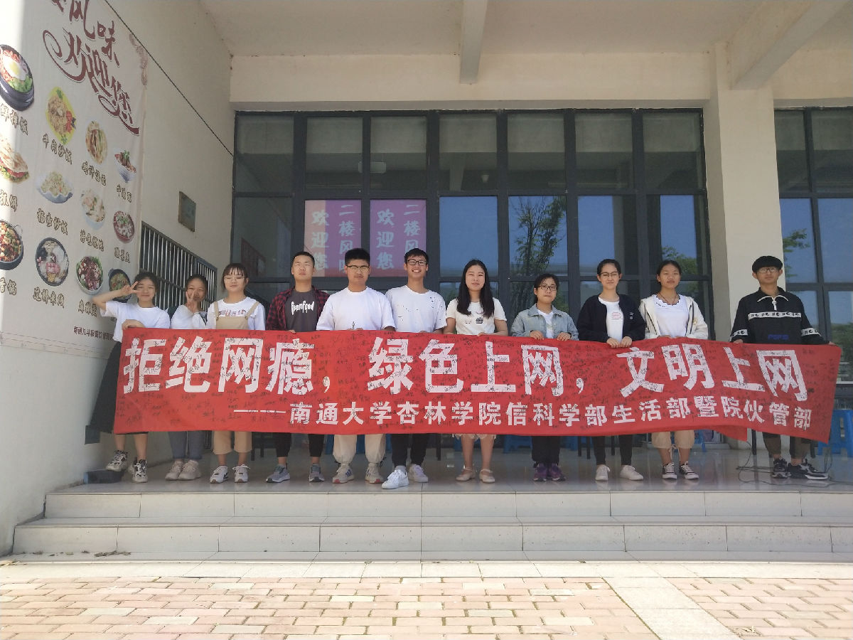 2019年5月29日星期三在南通大学杏林学院启东校区的食堂大门前举行了文明上网的签字活动。在此次活动中同学们积极参与,在活动中的同学们在红色标语上签下自己的名字,这份名字的签署展现的是对文明上网的了解和支持。最后所有的工作人员进行了开心的合影留恋且积极的完成了后期工作的铺垫。让我们一起倡导文明上网,不做网瘾少年。合理安排上网时间,爱护我们的眼睛呀!充实我们的生活,放眼望望其实世界真的很大。你值得更好的!