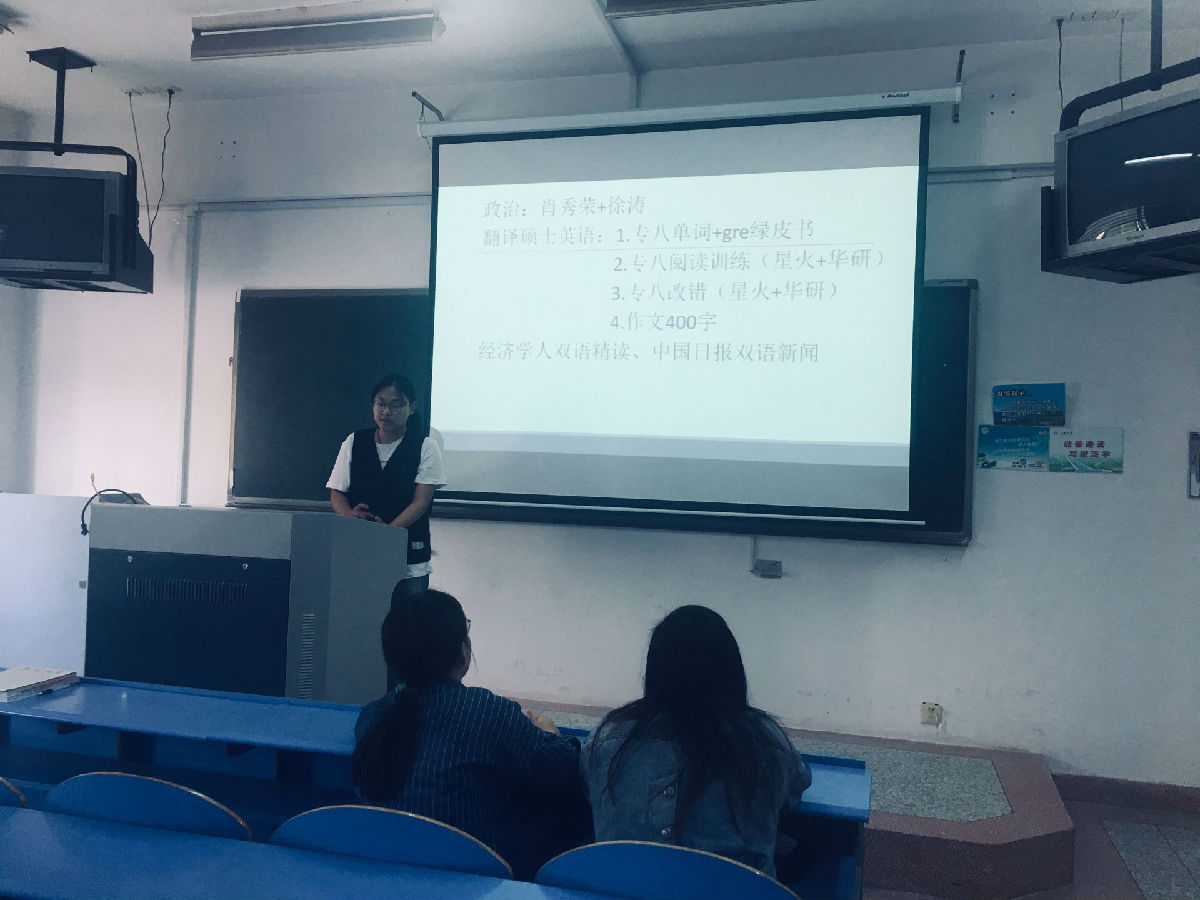 首先,陈云老师向同学们一一介绍了来宾的情况,并对16、17备考学子进行了鼓励。接着,五位优秀的同学分别就自己的考研经历进行了分享:顾瑜同学强调考研之路贵在坚持,保证有效学习时间;江炜蔚同学谈到了怎么准备、确定学校、选择官网书目,制定合适的努力目标;王钟村同学提到选择很重要,引用她当年走过一段弯路的经验让同学们引以为戒;陈梦依同学叮嘱大家学硕和专硕关键看自己选择。初试应备考充分,认真备考,多花功夫去背,推荐先以大纲形式开始背,慢慢理解框架,反复记忆。合理安排时间,如何高效学习需要自己集中精神,劳逸结合,适当放松自己。最后,孟梦雪同学分享了关于专业、地区、目标院校选择的方法,详细地介绍了她备考的科目复习安排,提及要用正确的方式、自律地复习备考。最后,陈云老师鼓励大家要积极准备考研,目标明确,坚持到底,感谢各位高年级学姐来为同学们分享自己的宝贵经验。