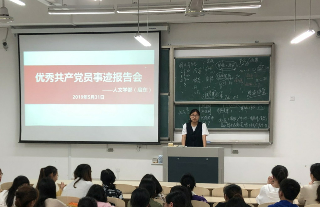 2019年5月31日晚,人文学部(启东)在JX3-4-107教室开展优秀党员考研事迹报告会。本次报告会邀请了英语151学生党员孟梦雪同学,报告会由中文162陈彦颖主持,16级、17级同学参加了此次活动。
