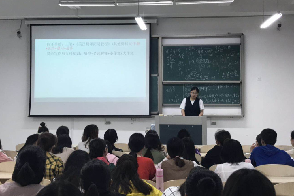 在交流环节中,很多同学对如何高效学习表达出疑惑。孟同学表示她自己有一套公式:动手翻资料+总结+温习=进步。她解释,学长学姐的笔记可以翻阅,但学习是自己的事,一定要有自己的思考和理解。“温故而知新,可以为师矣。”温习已学的知识,从中不断产生新的领悟是她考研成功的关键所在。