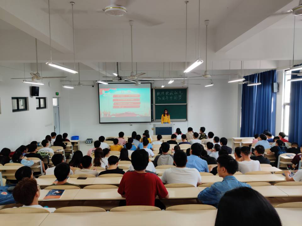 为了庆祝新中国成立70周年,激发广大团员青年的爱国之情、报国之志,引导广大青年“不忘初心·牢记使命”,2019年9月24日下午软嵌171、172团支部在教学楼3-4-301组织开展了“青春与时代共奋进·献礼70周年”主题团日活动,软嵌172团支部书记王倩倩同学出席并主持了活动。