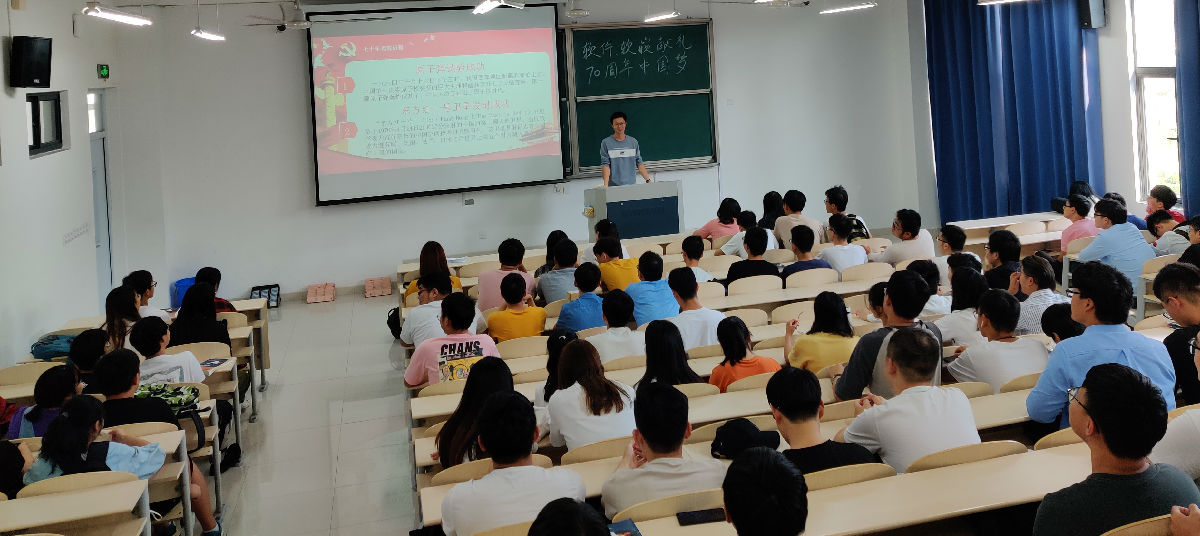 为纪念中华人民共和国成立70周年,软件171、172团支部于2019年9月24日下午,在JX 3-4-301教室举行了新中国成立七十周年主题团日活动,由软件171团支部书记马志浩同学主持本次团日活动。