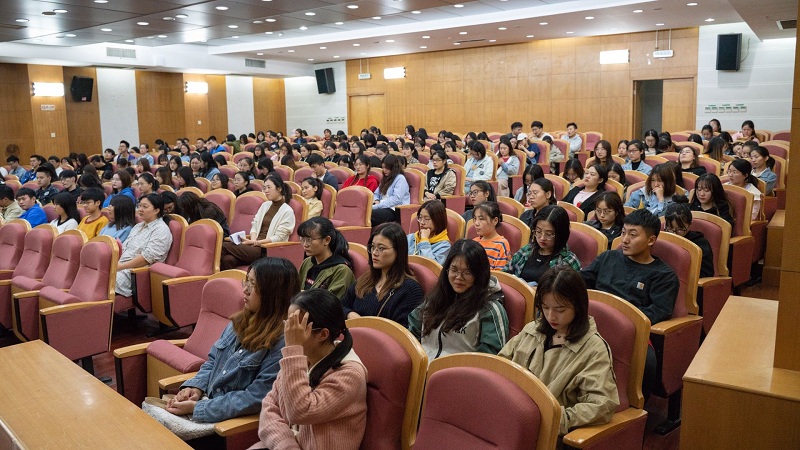 随后,南京大学文学院博士生、学部2015届校友何佳向现场的同学讲述她的逆袭之路:如何从杏林学院日语专业的本科生一路奋斗到双一流高校双一流学科建设单位的博士生。她以娓娓道来的方式对本科毕业就业形势、杏林学院优势、研究生就业优势等方面进行了分析并就此提出了对应的建议。关于考研方面她也进行了经验分享:考研的准备、考研的重点、院校的选择都让现场的同学们受益匪浅。最后何佳督促同学们准确定位自我,确立奋斗目标,鼓励同学们在学习中获得成长,在奋斗中收获快乐,在拼搏中成就自我。