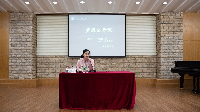 随后,南京大学文学院博士生、学部2015届校友何佳向现场的同学讲述她的逆袭之路:如何从杏林学院日语专业的本科生一路奋斗到双一流高校双一流学科建设单位的博士生。她以娓娓道来的方式对本科毕业就业形势、杏林学院优势、研究生就业优势等方面进行了分析并就此提出了对应的建议。关于考研方面她也进行了经验分享:考研的准备、考研的重点、院校的选择都让现场的同学们受益匪浅。最后何佳督促同学们准确定位自我,确立奋斗目标,鼓励同学们在学习中获得成长,在奋斗中收获快乐,在拼搏中成就自我。