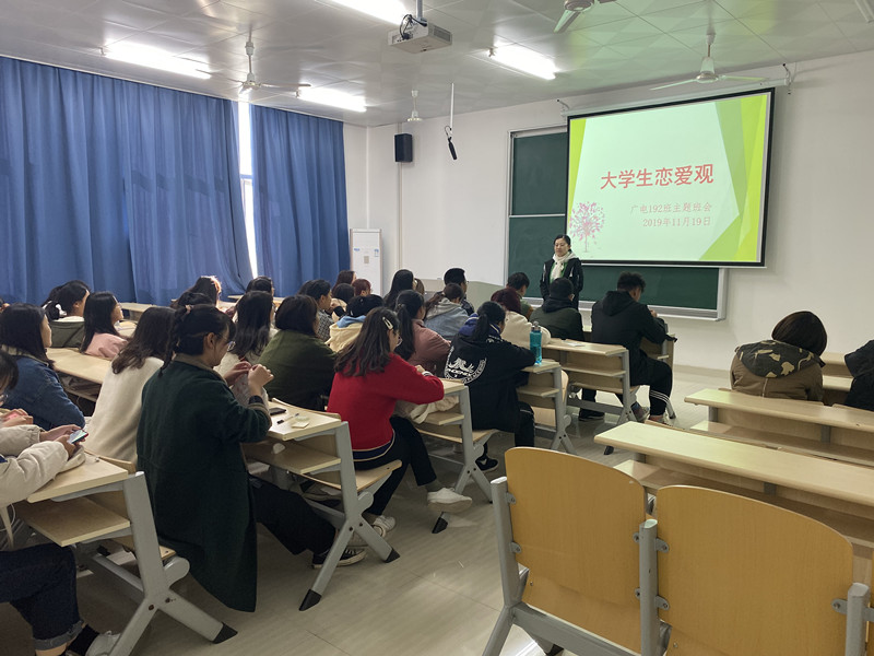 11月19日下午,广电192班全体同学在启东校区7-8-105教室召开“大学恋爱观”主题班会,会议由班主任崔老师主持。