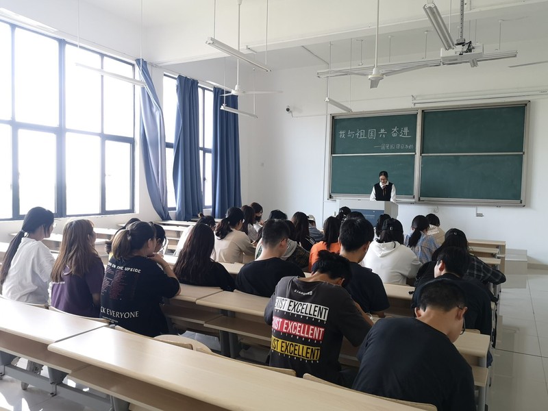 国贸182班全体成员于2019年9月20号下午三点在教学楼3-4-301进行了以“我与祖国共奋进”为主题的团日活动。