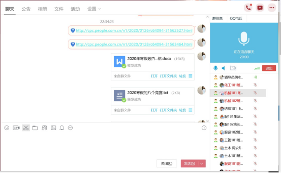 2月2日晚,我院工学部召开了关于“新型冠状病毒感染肺炎疫情的防控工作”18级线上班委会议。参与本次会议的为工学部18级化工、纺织、服工、服设、工管、土木、机械7个专业的全体班委,并由工学部18级辅导员胡晓晴主持进行。